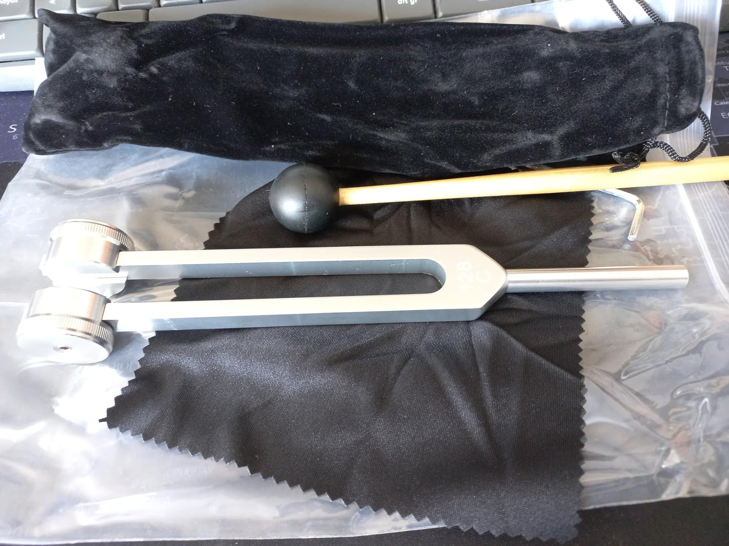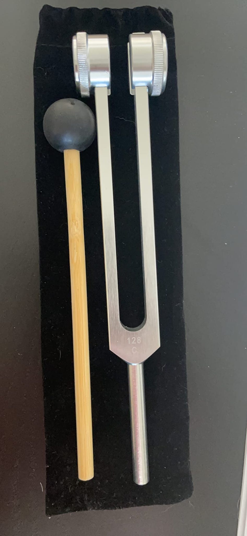 ✓ Pachetul include – Instrument 128 hz realizat din aliaj de aluminiu de calitate, un ciocan și o lavetă pentru curățare.
