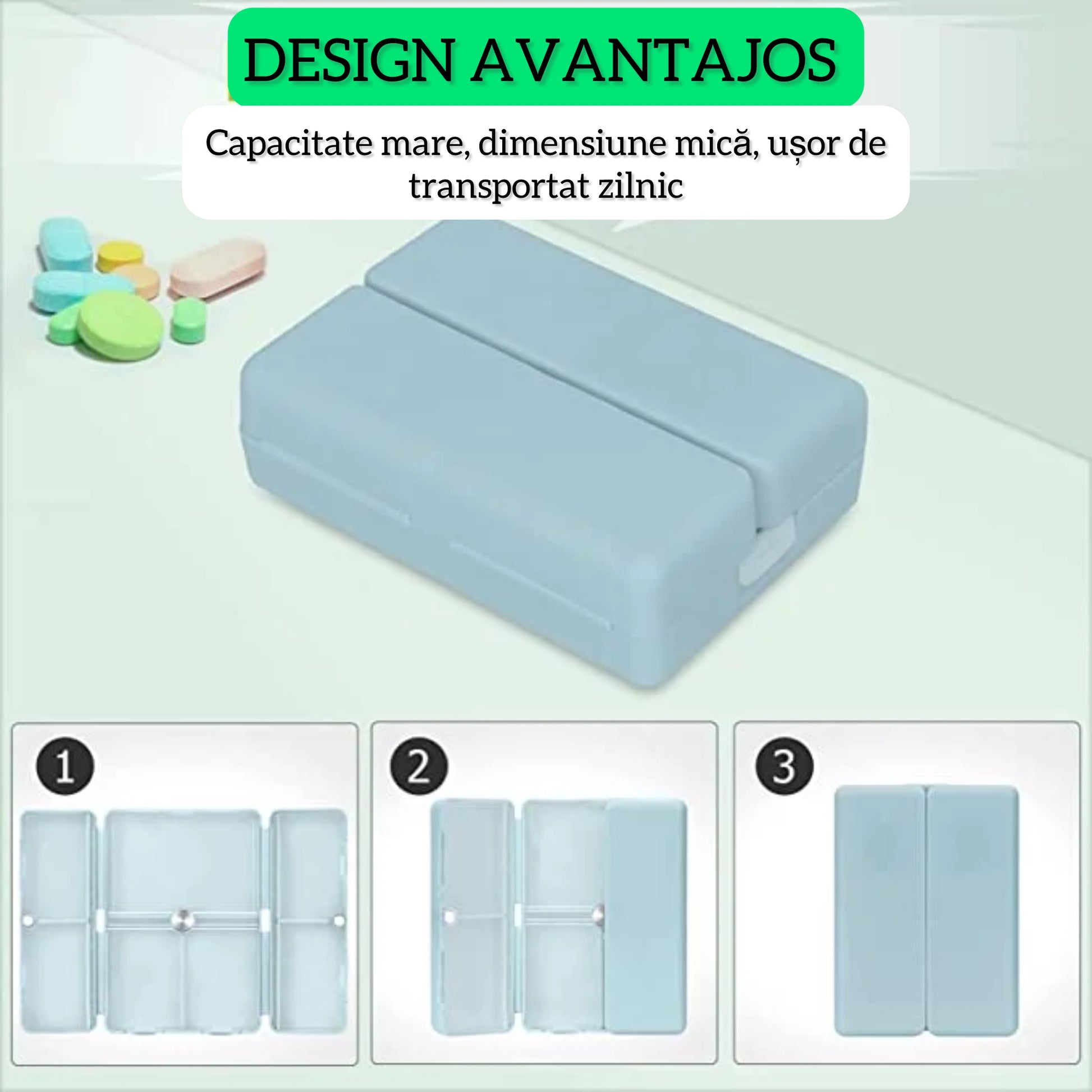 Ramona (pacient cu medicamente multiplie)Acest organizator de pastile este absolut fantastic! Trebuie să iau mai multe medicamente de două ori pe zi și acest organizator mi-a simplificat viața enorm. Materialul este robust și închiderile sunt foarte sigure, fără riscul de a se deschide accidental. Îmi place și faptul că este ușor de curățat. Este exact ce aveam nevoie pentru a-mi organiza mai bine medicamentele și pentru a avea liniștea că nu uit niciodată să le iau. Recomand cu toată încrederea acest produs tuturor celor care au nevoie de un sistem eficient de organizare a pastilelor! ⭐⭐⭐⭐⭐