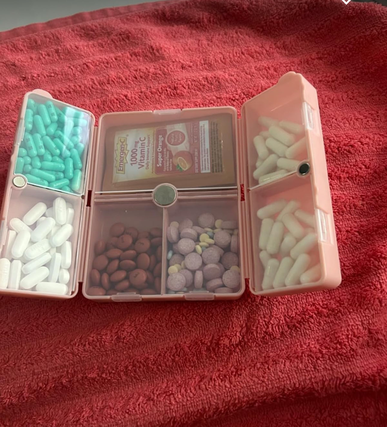 Elena LupuAm cumpărat acest organizator de pastile pentru a mă ajuta să îmi amintesc să iau suplimentele zilnice. Este compact și ușor de transportat, ceea ce îl face ideal pentru a-l pune în geantă. Fiecare compartiment este suficient de mare pentru câteva pastile mari. Un avantaj enorm este că închiderea este extrem de robustă, așa că nu trebuie să fiu atentă să nu se deschidă accidental în geantă. Sunt foarte mulțumită de acest produs și îl recomand pentru uz ocazional. ⭐⭐⭐⭐⭐