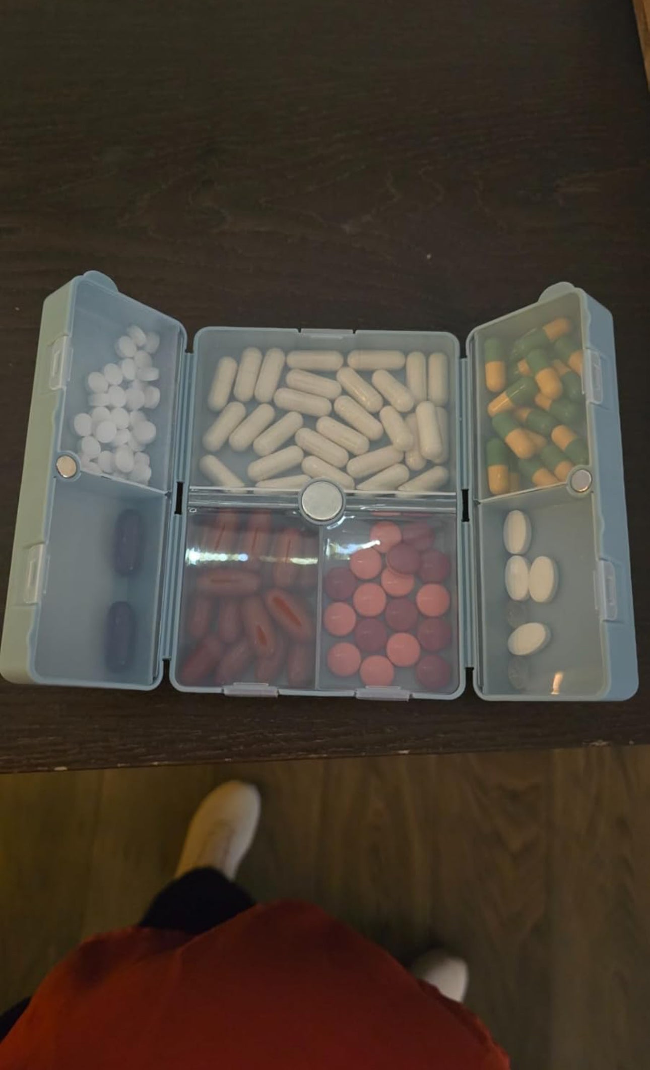 StefaniaCa persoană în vârstă care trebuie să iau mai multe medicamente zilnic, acest organizator de pastile a devenit esențial pentru mine. Este ușor de deschis și de închis, chiar și cu artrită, și îmi place că pot vedea clar pastilele prin compartimentele transparente. De asemenea, apreciez că este suficient de mare pentru pastilele mele mari, dar nu ocupă prea mult spațiu. În general, sunt foarte mulțumit de acest produs. ⭐⭐⭐⭐⭐